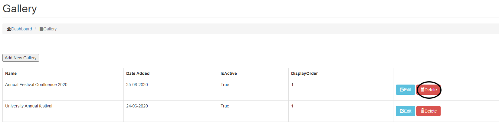 E.g we have named the Gallery as Annual Festival Confluence 2020.