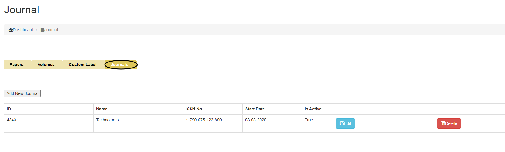 •   To Delete Journal, click on the Delete button.