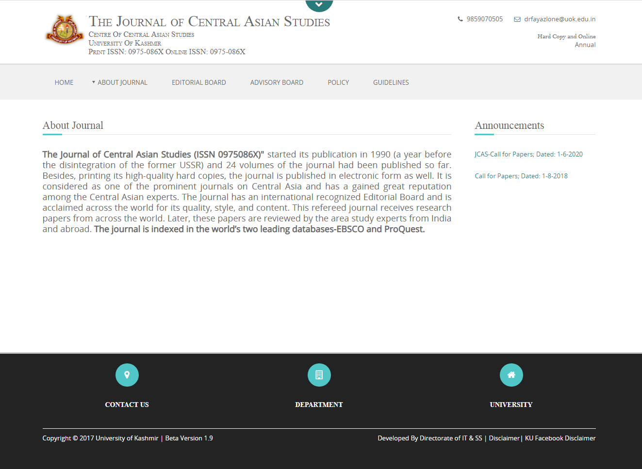 Screenshot showing Journal Published by Central Asian studies