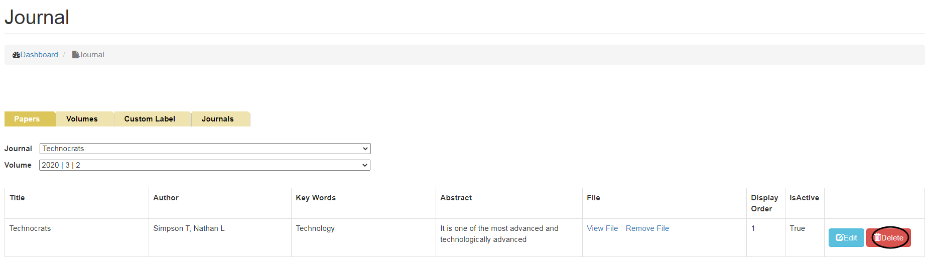 • To Delete Papers, click on Delete Button.
